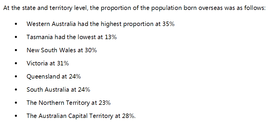 ·澳大利亞29.8%的人口出生于海外;