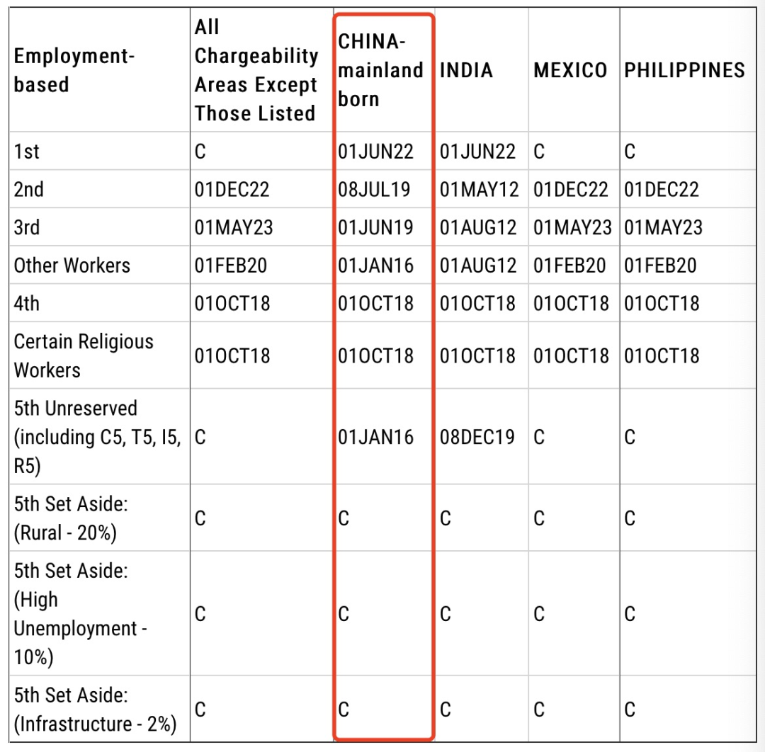 EB-1:排期為2022年6月1日,無變化