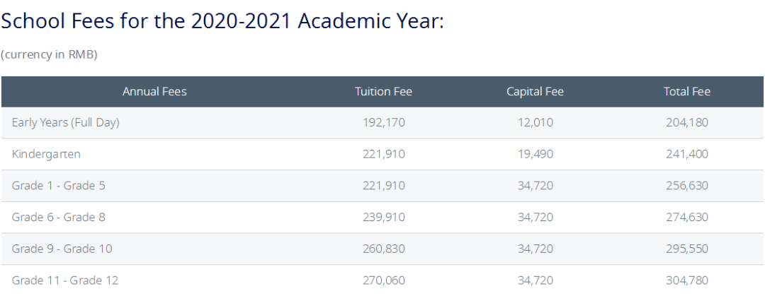比如北京順義國際學校,2020/2021幼兒園24萬人民幣每年,11-12年級30.5萬人民幣每年。