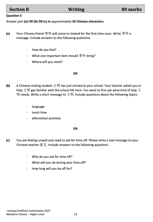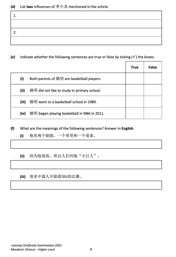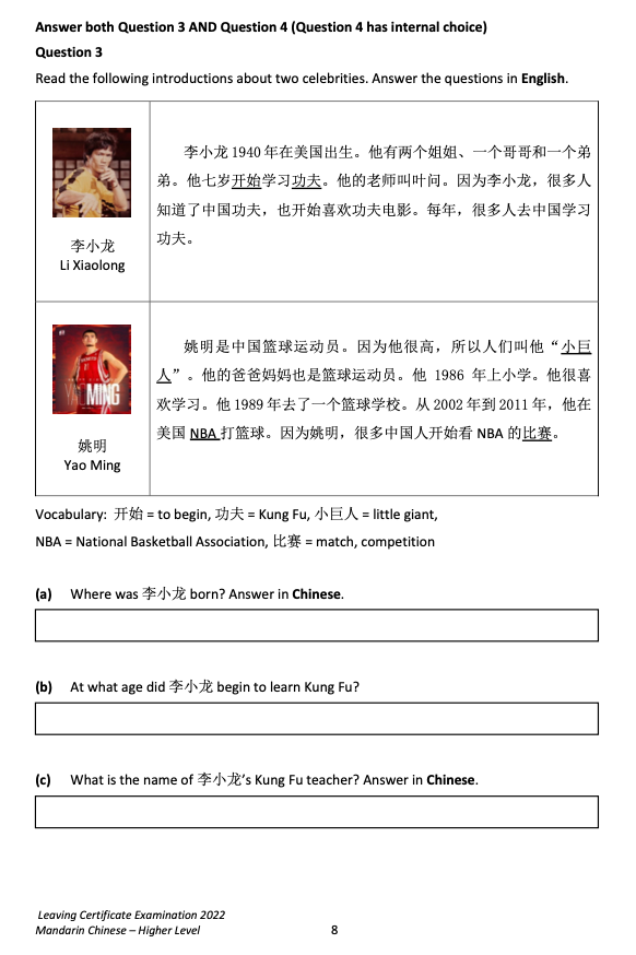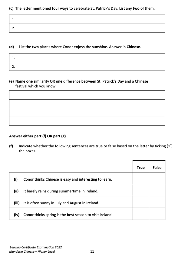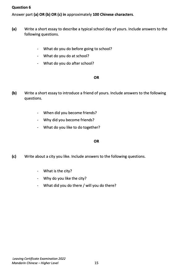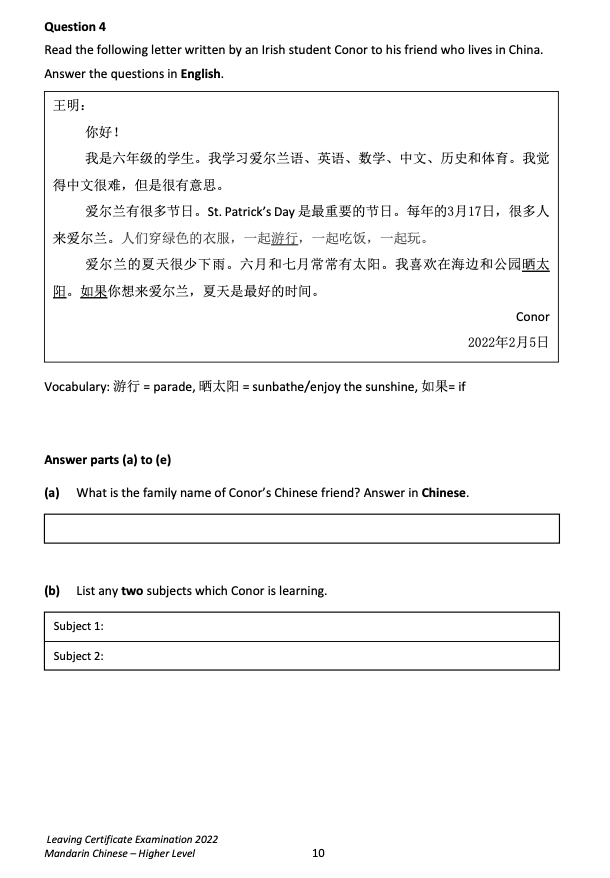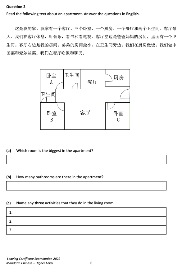 來,直接看愛爾蘭中文高考原卷吧