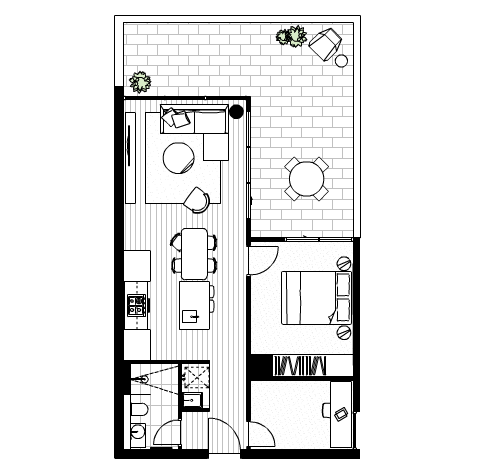 一房配置:一房一書房一衛(wèi)一車庫帶陽臺(tái)