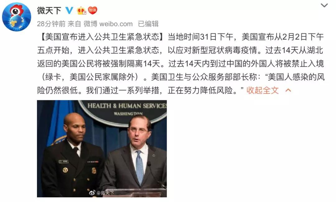 同時,從2月2日開始,任何在過去14天內(nèi)到過中國湖北省的美國公民入境美國時,都將被強制隔離14天。