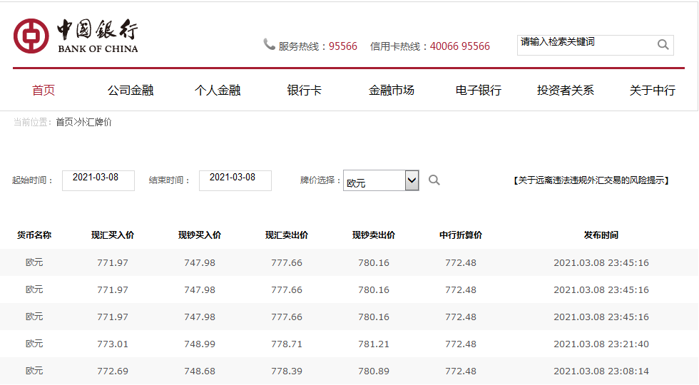 2021年3月8日歐元匯率