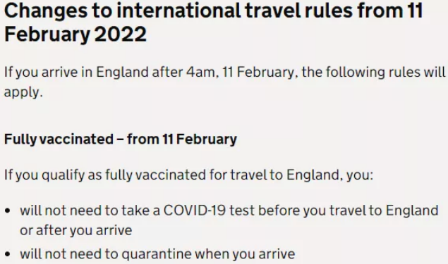 最新消息,英國交通大臣格蘭特·沙普斯(Grants Shapps)表示,從當地時間2月11日凌晨4時起,已完全接種疫苗的旅客入境時只需填寫旅客定位表,在入境英國前后都無需進行任何新冠測試。12-15歲兒童也將在春季期中假期前開始獲得電子版的疫苗接種證明,便于出境度假。